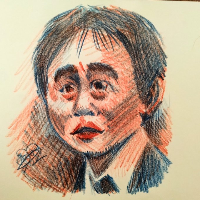 🍀描いてみました🍀 百均の赤青えんぴつで描いてみました #100円ショップ #赤青えんぴつ #似顔絵 #浜田雅功 #ダウンタウン #イラスト #イラスト好きさんと繋がりたい #絵描きさんと繋がりたい #絵柄が好みっていう人にフォローされたい #一日一絵