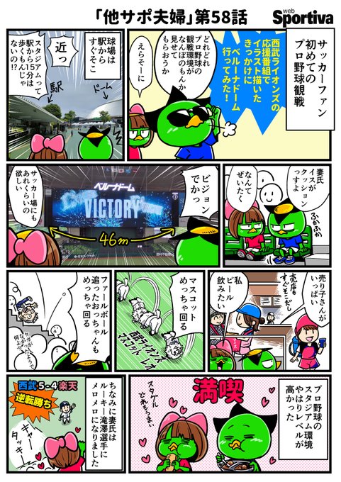 夫婦で応援するクラブが違うと色々ある。 千田純生先生(@chidajunsei3163 )の連載『他サポ夫婦』第58話です。他サポ夫婦がプロ野球観戦に行きました。 他サポ夫婦の方、是非エピソードをレスください。 #マリノス #浦和レッズ #埼玉西武ライオンズ #他サポ夫婦 連載一覧👉 lnky.jp/g4QRX9k