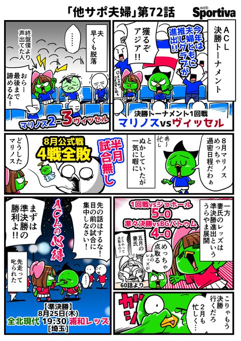 夫婦で応援するクラブが違うと色々ある。 千田純生先生(@chidajunsei3163 )の連載『他サポ夫婦』第109話です。 遂にACL決勝2戦目! #浦和レッズ がサポーターの強烈な後押しを得てアルヒラルをホーム埼スタに迎えた! #他サポ夫婦 ⚽連載一覧▶️ lnky.jp/jvXmgSg