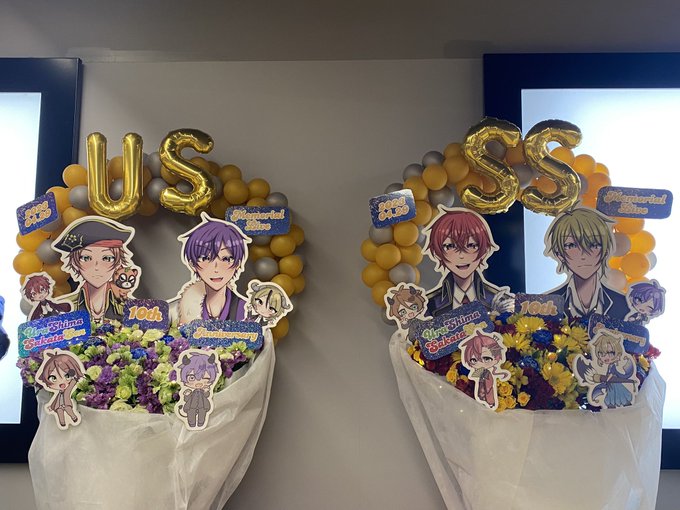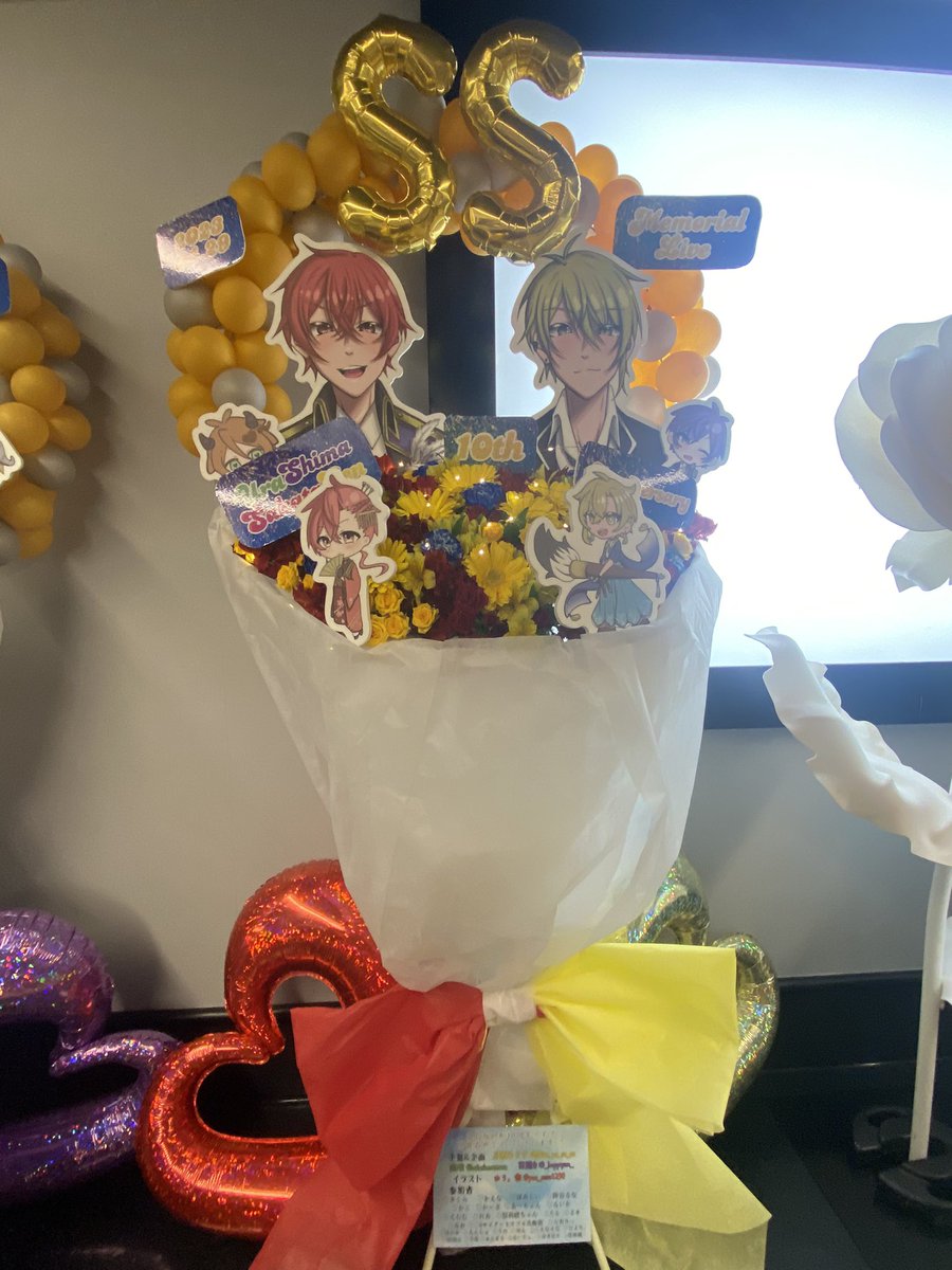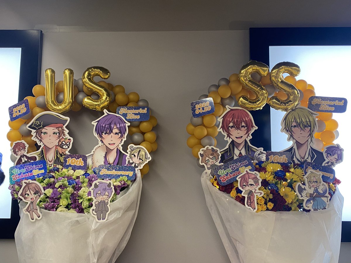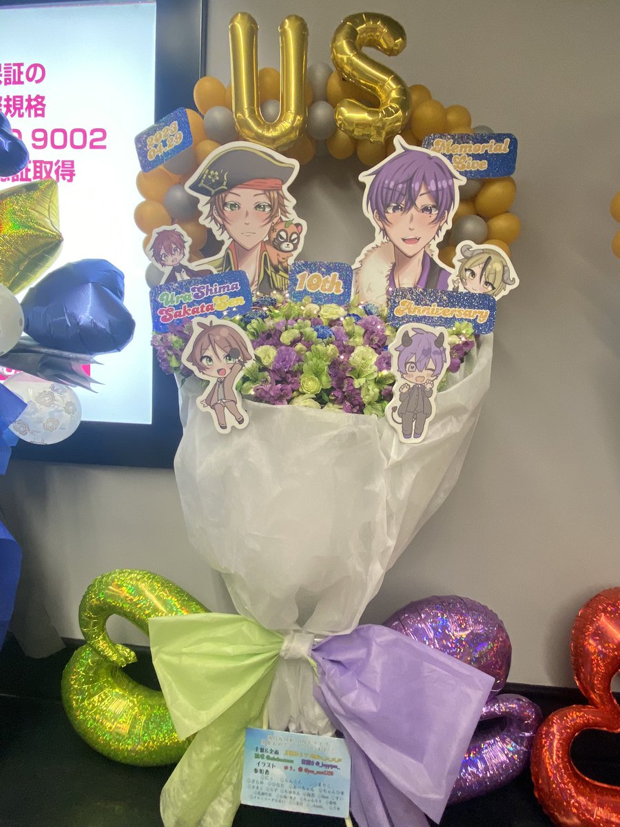 こちらのフラスタイラスト描かせてもらいました!本当に最高の10thライブありがとうございました🚢💚💜❤️💛 #うらたぬ王国の美術館 #しまーと #坂田です #センラの絵ぇやん #浦島坂田船たまアリ #浦島坂田船メモリアルライブ