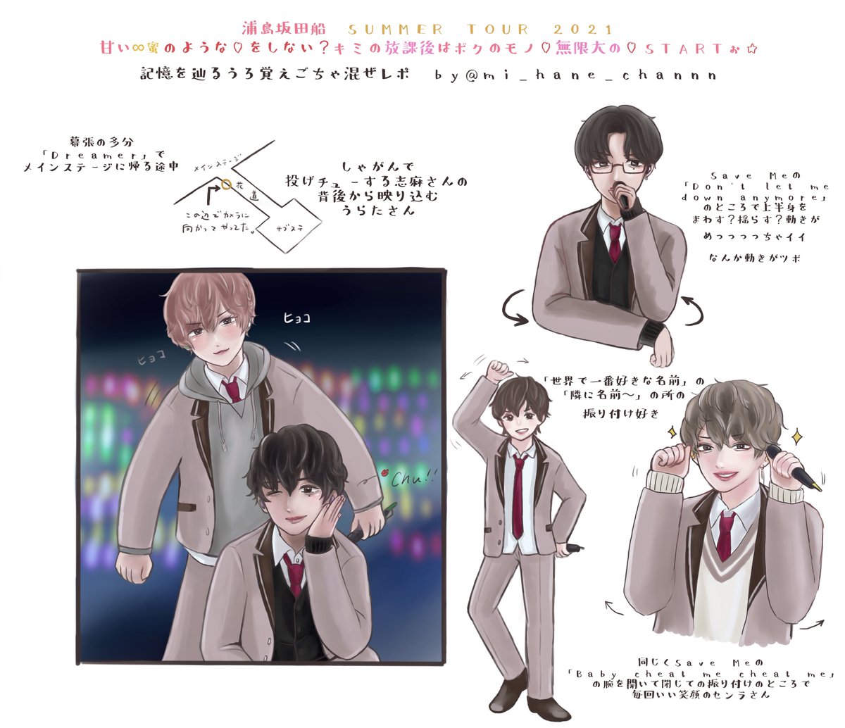 ✨夏ツ2021の雑多レポ✨ 文字数多いのでタップ推奨 振り付けだけでももっと描けるほどに楽しかった夏🏖 #浦島坂田船夏ツアー2021 #うらたぬ王国の美術館 #志麻 #坂田です #センラの絵ぇやん