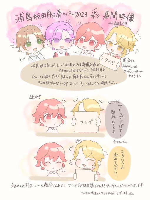 浦島坂田船春ツアー2023 彩 幕間映像 珍しく(?)身体を張らないゆる〜い幕間映像、地域へ会いに来てくださることを大切にしている浦島坂田船らしい内容でとても好きでした☺️🌸 #浦島坂田船春ツアー2023 #センラの絵ぇやん