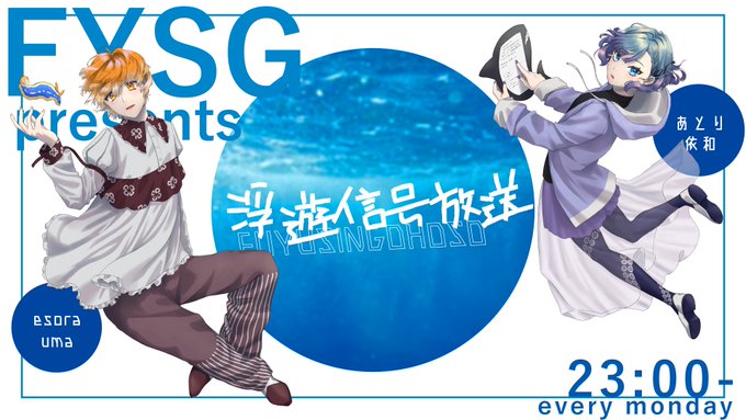 ✨浮遊信号放送リニューアル!!!✨ 宇宙服から海の衣装にチェンジしました🌊 イラスト:朝夜正午(@DachiEvgShower) #浮遊信号放送 は毎週月曜23時から第二基チャンネルにて配信中! youtube.com/channel/UCe8Xp… #浮遊信号
