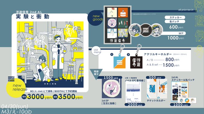 🚦お知らせのお知らせ📻 🕘4/18 21:00~ ※浮遊信号chにて M3にて頒布予定のセカンドアルバム「実験と衝動」についてのお知らせ配信を行います!💿✨ グッズ等のお知らせもあるかも...👀 浮遊信号放送 実験と衝動編 youtube.com/live/6YATz2Fgx… #浮遊信号