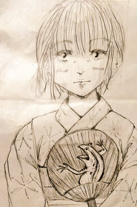 今回のケモミミちゃん 酔い酔いケモミミちゃん ちょっとだけ色付き (人 •͈ᴗ•͈) #オリジナルキャラクター #花maruの絵 #ケモミミ #アナログ絵 #浴衣女子 #絵柄が好みって人がいたらいいなぁ