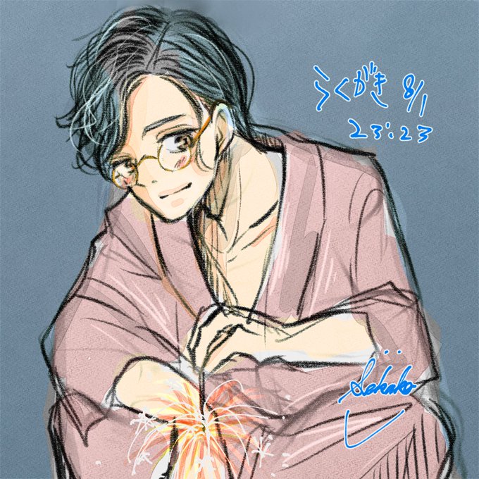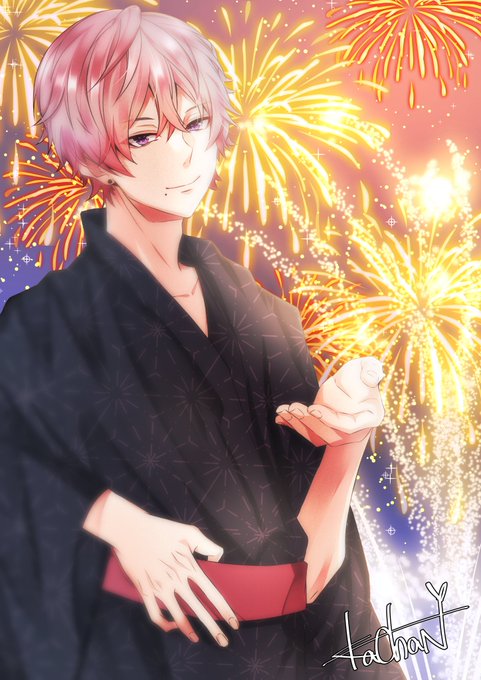完成です☺️ 『夏の夜』 花火をハッキリさせ過ぎちゃったかな🤔 #透明水彩 #イラスト #illustration #夏 #花火 #浴衣男子 #金魚 #蓮 #絵描きさんと繋がりたい #みんなで楽しむTwitter展覧会 #イラスト好きさんと繋がりたい