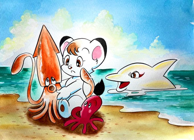 Amazonプライムで、日々「ホラー映画」を見ながら「絵」を描いている私🎨絵に集中している間はいいのだけれど、一度👀見入ってしまうと恐怖で全ての動きが止まってしまう😓#ホラー映画 #手塚治虫 #ジャングル大帝レオ #海のトリトン・ルカー #水彩画 #アナログ