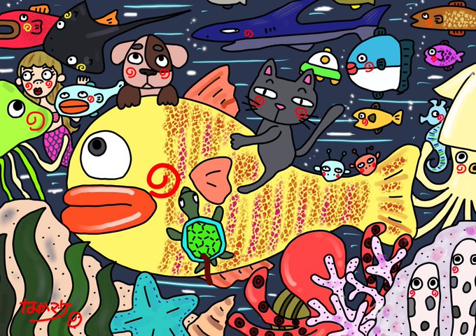 おはようございます☀ 絵を描いている時だけは、現実の嫌なことすら忘れられます😌 そして海の中を描いているとワクワクしてくる😊 水曜日★週中ですがぼちぼち頑張っていきましょー🤗 #海の中 #イラスト #みんなで楽しむTwitter展覧会
