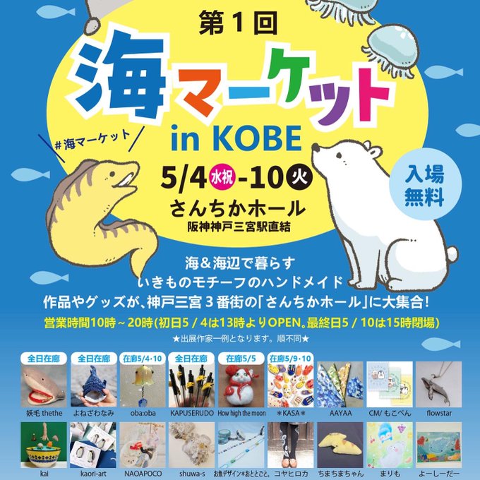 ✨出展情報✨ 告知が遅くなりましたがm(__)m 明日から関西で委託出展です! 【#海マーケット in KOBE】 santica.com/event/20220505 人気定番のカツオノエボシほか ミジンコなど海系水棲生物を販売します! 関西委託は滅多にありませんので ビビッとくる作品がありましたら是非getしてくださいね~✨