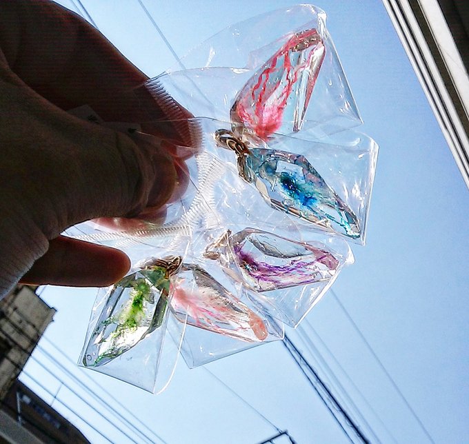 #海マーケット 本日3日目♪ さんちかホールにて (阪神神戸三宮駅直結) 20時までオープンです! santica.com/event/20220505 カツオノエボシ&ミジンコを中心に カニ、ピンポンツリースポンジ カエル(透明骨格標本風)が御座います✨ 1点限定の作品多数ですのでお見逃しなく!! twitter.com/garyukirigami/…