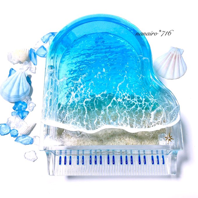 #商品名を叫ぶと優しいフォロワーさんがRTしてくれる (*ノ´▽`*)ノ .。oO Music wave ~🌊✨ .゚・*. (*ノ>▽<*)ノ .。oO マリン ピアニストー🐬🎹✨ 新作デビューします |• •๑)"🏝✨ #海レジン
