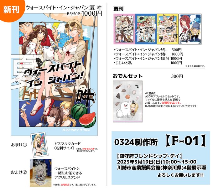 前回の夏阿編に続きましてゲスト作家さんがいらっしゃいます。今回の夏吽編に参加して下さったのはいどさん(@idonum )、そしてマスクザJさん(@joniele13 )のお二人です。 お二人とも実に味のある瀬戸川提督を描いて下さいました!!もちろん素敵なWarspiteも。お楽しみに🤭 #鎮守府FSD #海外艦オンリー twitter.com/narusawakun/st…