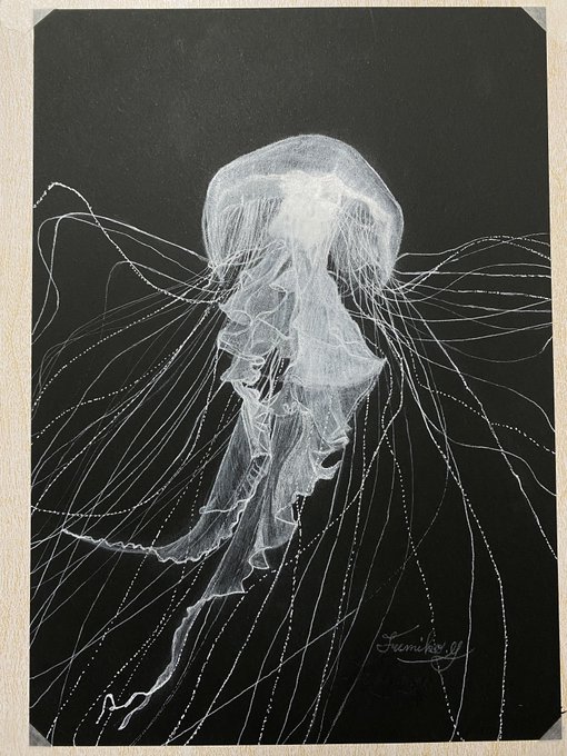 新作です‼️ 今回は「海月(クラゲ)」を描きました🖋 . #ishichan #ishichan.e #創作絵 #絵描きさんと繋がりたい #コピックとデジタル #イラスト好き #芸術 #アート #illustration #クラゲ #海月 #海底 #水母