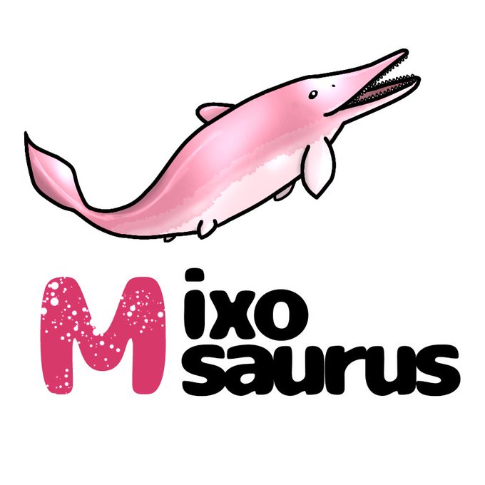 恐竜イニシャル初の #魚竜 がとうじょう。 #ミクソサウルス はもっとも小さい魚竜のひとつです。とはいえ1mほどは大きいです。細長い吻部には歯がするどいです。前鰭が大きくそして、尾鰭のかたちがほかの魚竜とちがいます。 #古生物 #mixosaurus #イラスト #ibispaint #海棲爬虫類