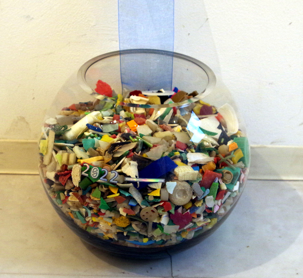 「New Colors」 Mixedmedia 2022 テラリウムを引用した作品。 プラスチックが溜まりゆく海について。 #現代アート #海洋プラスチック #テラリウム #contemporaryart #marineplastic