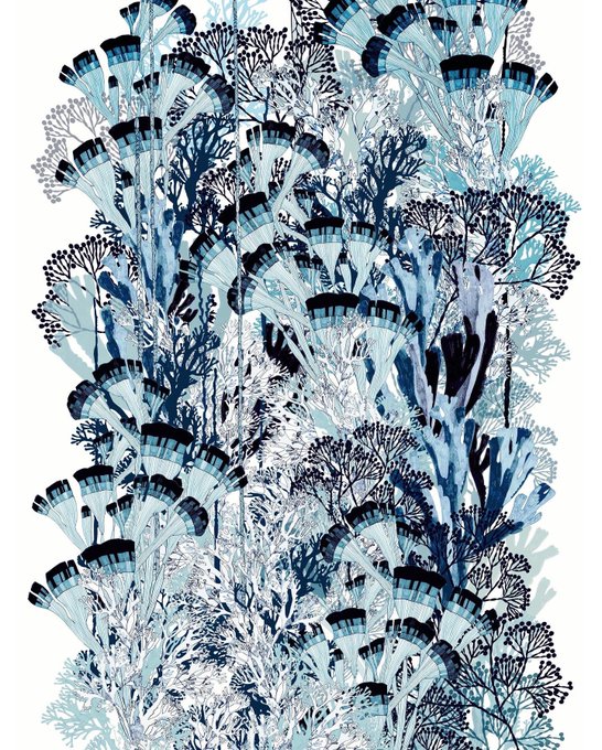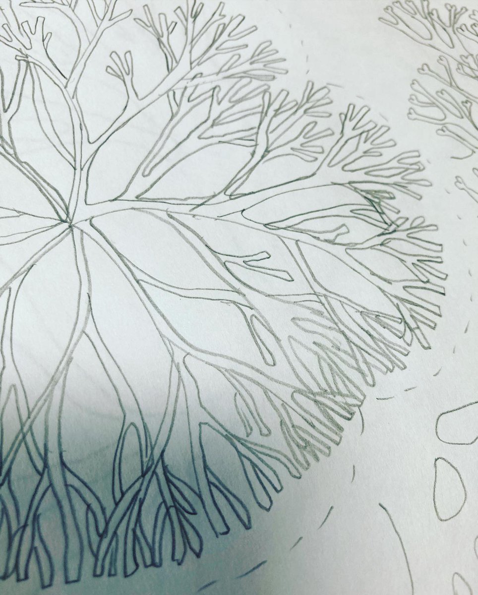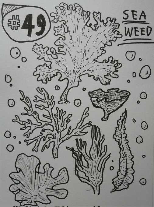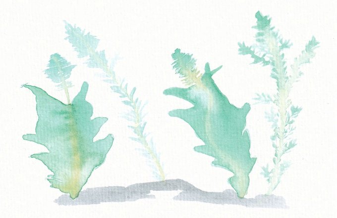 海藻の森 Seaweed forest ウミウチワ、ヒラガラガラ、ヒロハコモングサ、トサカノリ、フクロツナギ、などなど… 海藻の名前、面白い。 #sea #seawood #forest #海藻 #planted #botanical #botanicalart #botanicalillustration #illustration #art #artwork #こうのかなえ