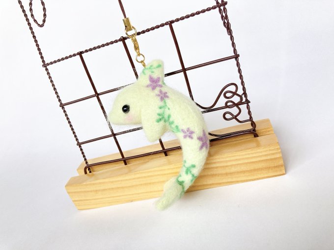 花イルカさん 薄黄緑色 羊毛フェルト ストラップ|ハンドメイド、クリエイター作品のマーケットプレイス #Creema creema.jp/item/11713151/… @Creema_jp #creemaで販売中 #イルカ #海豚 #dolphin #羊毛フェルト #needlefelt