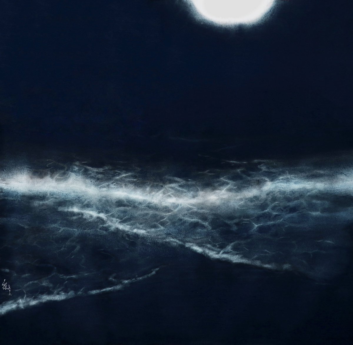 〈 汐 〉 78 × 76 cm / 紙本設色 / 2021 #海 #海邊 #seapaint #sea #painting #paintings #easterngouach #mineralpaint #水彩 #水彩畫 #watercolor #watercolours #watercolorpainting