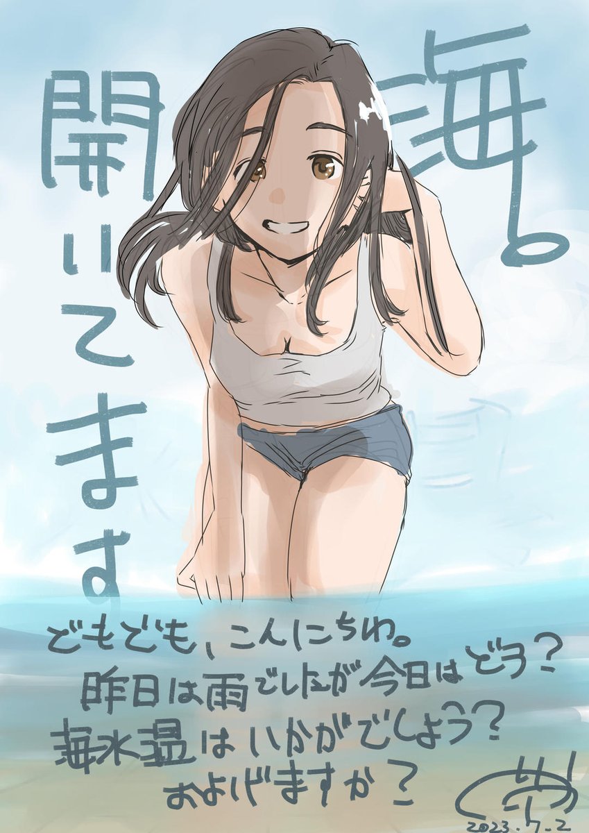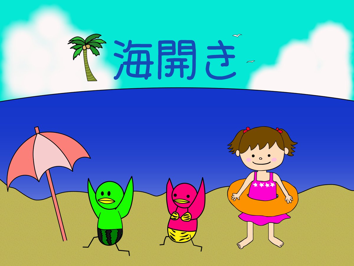 おはようございます😊 今日は海開き🏝 特に日付けは決まってないみたいだけど、 7月って聞くと夏が来たなって感じがするね☀ 夏と言えば海ー😆 と毎年海に行ってた頃が懐かしい(笑) 今日も一日よろしくお願いします🙌 #イラスト #海開き #絵描きさんと繋がりたい