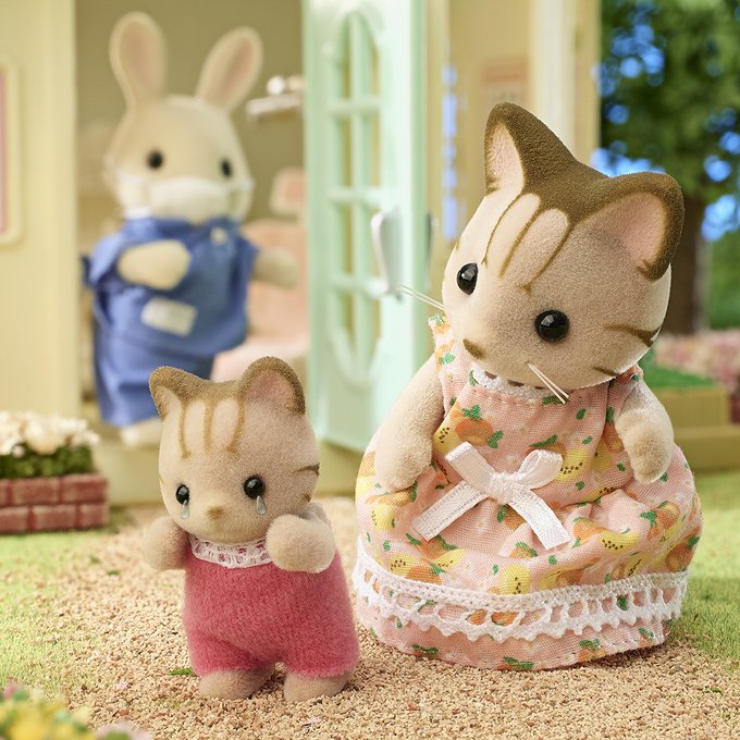 「こわいよぉ…」 「大丈夫、虫歯が無いかチェックしてもらうだけよ~」 シマネコのアプリコットはお母さんのアメリアと一緒に歯医者さんに来ました🦷 なかなか勇気が出なくて、中に入れないみたい…💦 がんばって!アプリコット! #シルバニアファミリー #シルバニア #シルバニア赤ちゃん #涙