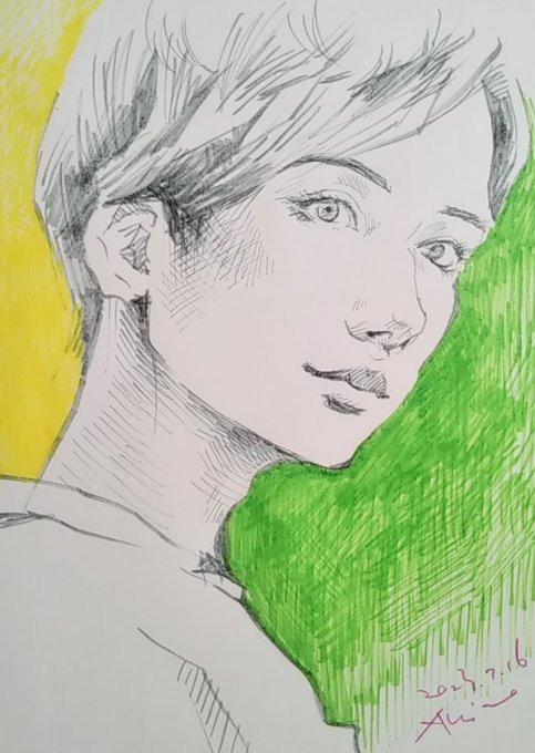涼し気なお顔立ちの男の子 今日も暑いですねー🥵 #涼しげ #暑い #ペン画 #人物画 #イラスト #アート #絵画 #絵描きさんと繋がりたい #アート好きな人と繋がりたい #イラスト好きな人と繋がりたい