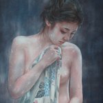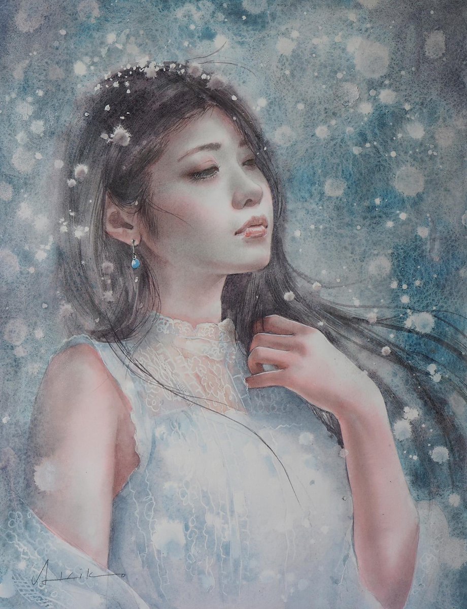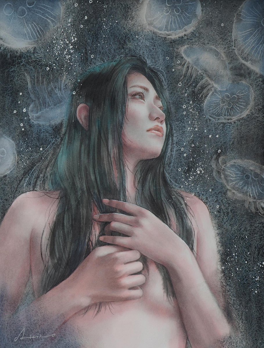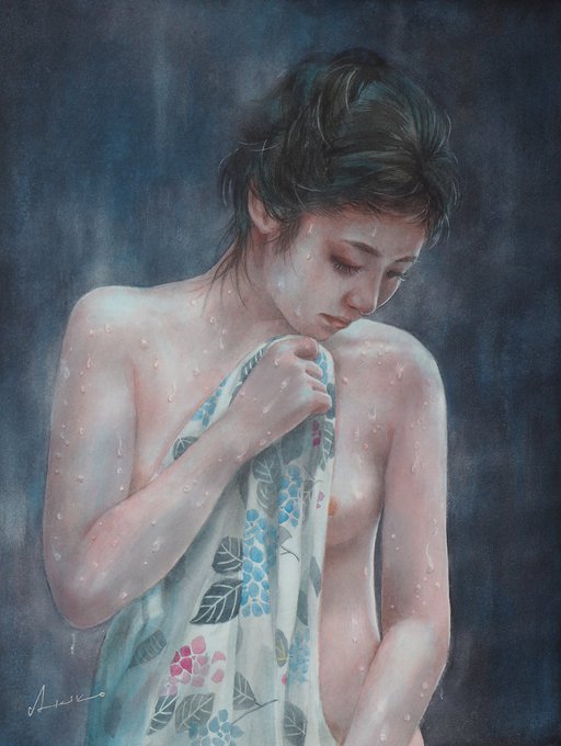 魂が蛍火になって帰ってくる そこにいる貴女この世の人ではないのかも 【蛍火】F6号部分 涼風会展は11日からですが、 オンラインショップがスタート致しました😃 g-mitakeshop.com 遠方の方も御覧頂けます✨ #美人画 #人物画 #涼をどうぞ #涼風会展 #絵描きさんと繫がりたい #美岳画廊