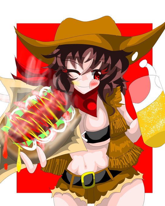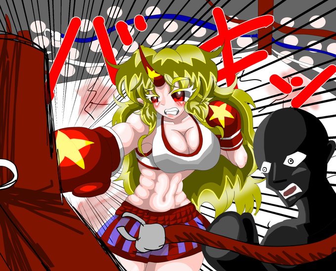 #深夜の真剣お絵かき60分一本勝負 #星熊勇儀 勇儀「ありゃ!?またやっちまった…」 ボクシングのコーナーポストをつい毎回のごとく壊してしまう姉さん、そのたびに対戦相手がリング外に逃げ出すのがお決まり。