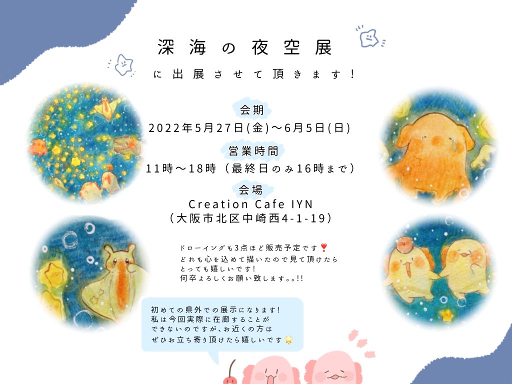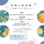 Creation Cafe IYN 『 #深海の夜空 』展 本日からスタート!🐋💫🪐 深海ってどんな世界なんだろうと、自分の想像力が掻き立てられるような少し不思議で綺麗な作品が今回集まりました🌙 展示風景はHPから! 11時〜18時まで◎ 本日からよろしくお願いします! #IYN #イラスト好きさんと繋がりたい