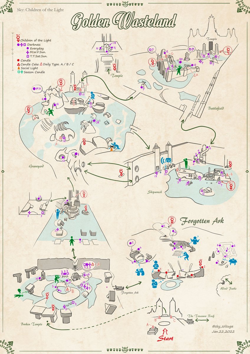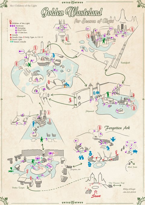 sky各エリアのマップ No.5「捨てられた地」捨て地/捨地 Ver.2022/01/22 深淵の季節のシーズンキャンドル位置ありバージョンです。 季節限定地図となります。 Golden Wasteland Map Season of Abyss #thatskygame #SkyChildrenOfTheLight #sky星を紡ぐ子どもたち #深淵の季節 #sky地図