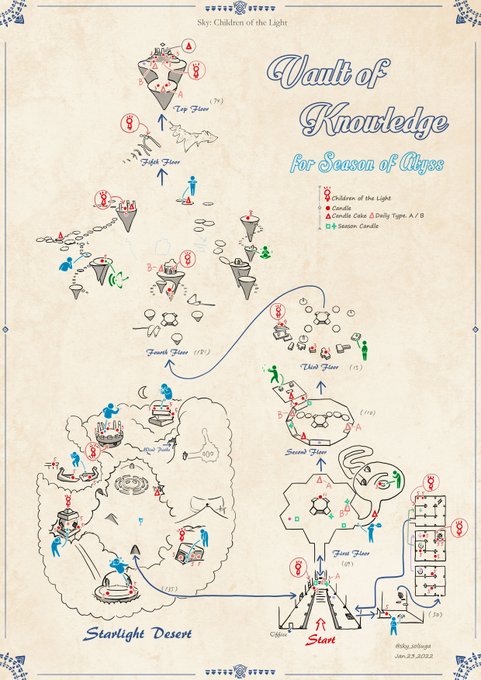 sky各エリアのマップ No.6「書庫」 Ver.2022/01/23 深淵の季節のシーズンキャンドル位置ありバージョンです。 季節限定地図となります。 Vault of Knowledge Map Season of Abyss #thatskygame #SkyChildrenOfTheLight #sky星を紡ぐ子どもたち #深淵の季節 #sky地図