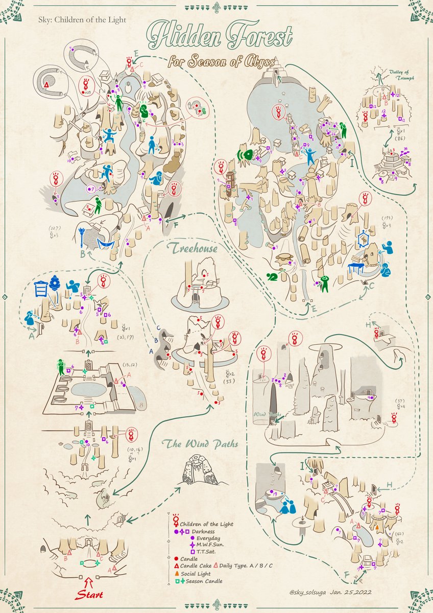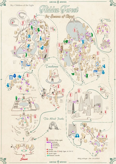 sky各エリアのマップ No.3「雨林」 Ver.2022/01/25 深淵の季節のシーズンキャンドル位置ありバージョンです。 季節限定地図となります。 Hidden Forest Map Season of Abyss #thatskygame #SkyChildrenOfTheLight #sky星を紡ぐ子どもたち #深淵の季節 #sky地図