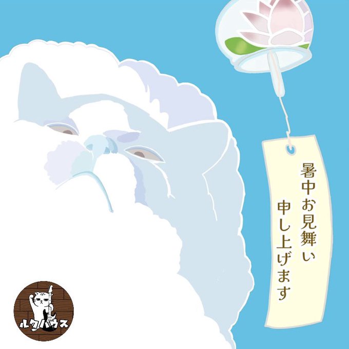 #ルクハウス から、#ルクハウス広報担当1号 の #イラストで #暑中お見舞い申し上げます。雲の中はのあちゃんですね😁 #暑中見舞い #清水区 #イラスト #いらすと #イラスト好きな人と繋がりたい #清水区不動産 #不動産売却 #猫イラスト #猫好きさんと繋がりたい