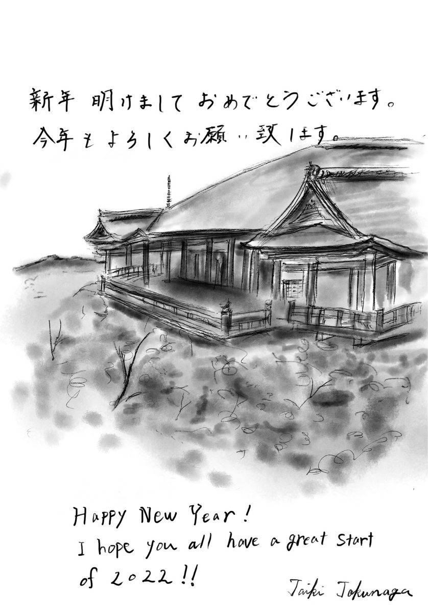 あけましておめでとうございます! フォロワーの皆様への年賀状です! (お返しは大丈夫です🙌) なぐり描きでごめんなさい😅 今年も宜しくお願い致します🌹 #清水寺 #年賀状 #あけましておめでとうございます #art #絵描きさんと繫がりたい