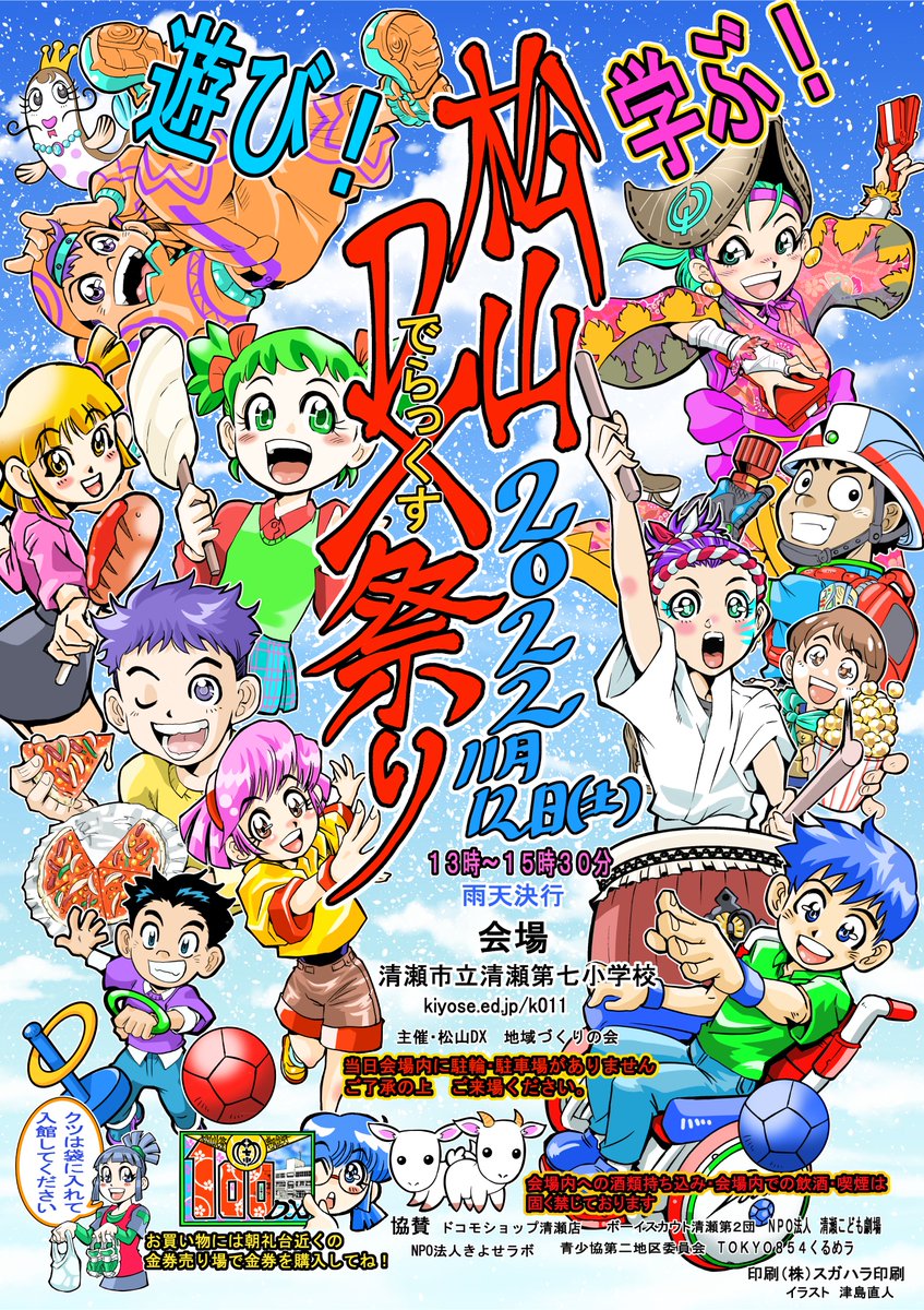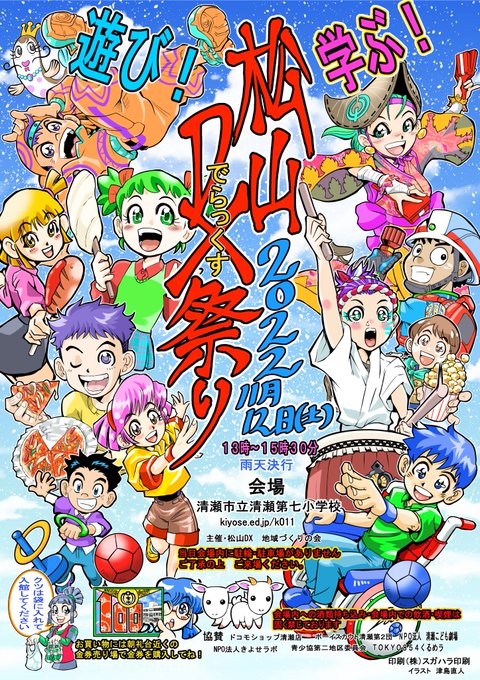 昨日は清瀬第七小学校の「松山DX祭り」で一日運営員会の一員として のほほんと過ごしてました今回で2回目ポスターやら会場マップやら協賛イラストやら色々描きましたわっ! 来年も開催されることを祈ります #清瀬 #TOKYO854くるめラ