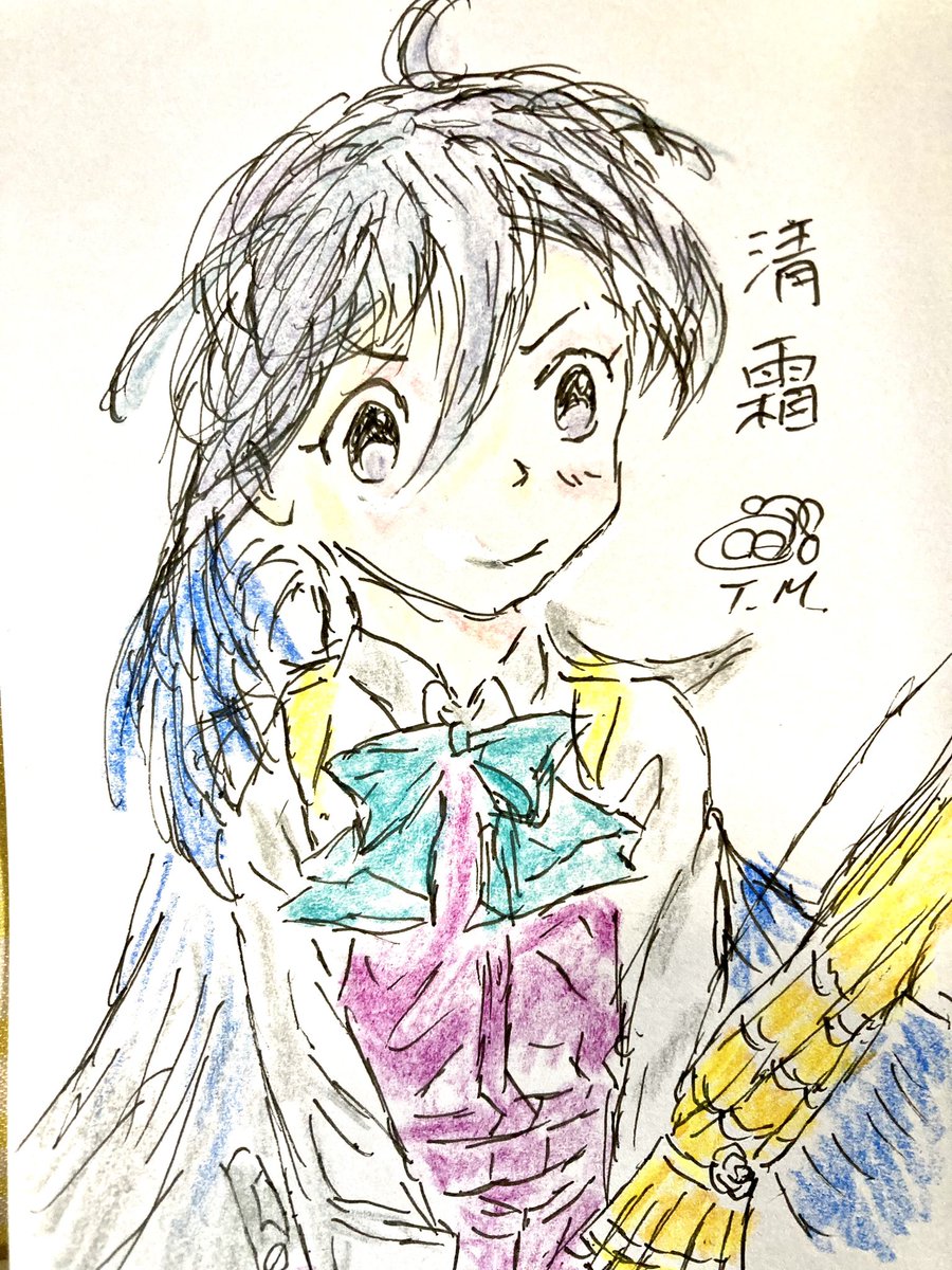 #艦これ版深夜の真剣お絵描き60分一本勝負 #艦これ版真剣お絵描き60分一本勝負_20230609 #清霜 元気な駆逐艦さんです。活躍してくれてますが、戦艦にはまだなれていません。清バニさん。