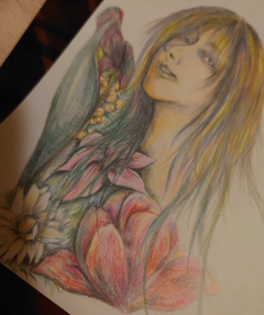途中で妥協🙃というか満足😤ぶーやん難しい🤣#SUPERBEAVER #渋谷龍太 #鉛筆画 #色鉛筆 #ぶーやん #柄シャツムズいから花を纏わせてみた #ファンに怒られるかな #私も大ファン