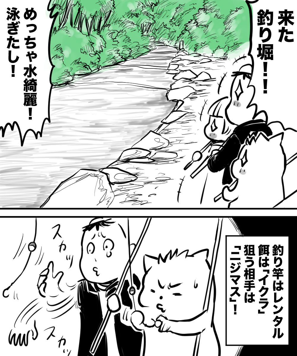 「絵描き3人で釣りに行ったら自由過ぎた話」② イクラなんて人間の僕でさえなかなか食べれないのに贅沢な魚ですな・・・ カッパさん(@okappaya2019) こなかさん(@_motonashi) #漫画が読めるハッシュタグ #エッセイ漫画 #渓流釣り