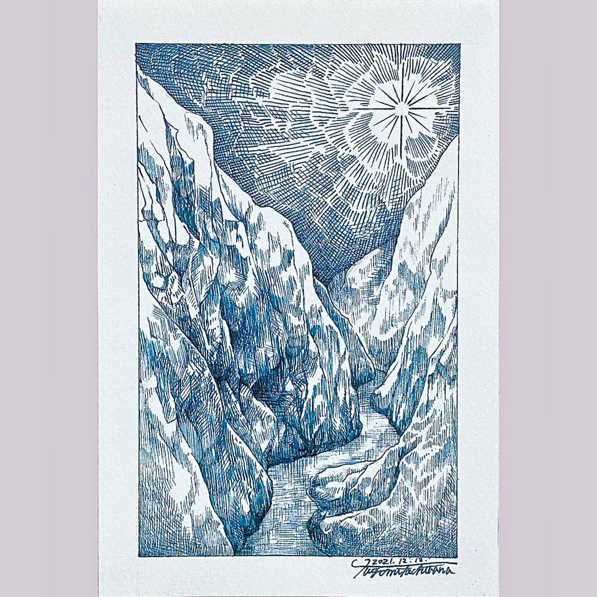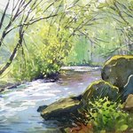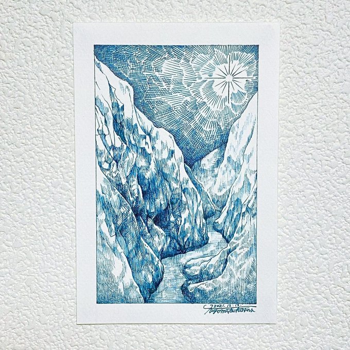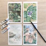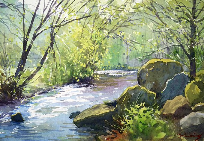 Flow Through(?) A new watercolor painting. My phone camera kinda wrecked some of the colors, but I did what I could to fix stuff. #watercolor_painting #waterfall #moss #originalart #watercolorpaper #絵 #絵画 #水彩画 #滝 #渓谷 #苔 #不思議 #冒険 #オリジナル #オリジナル絵 #예술