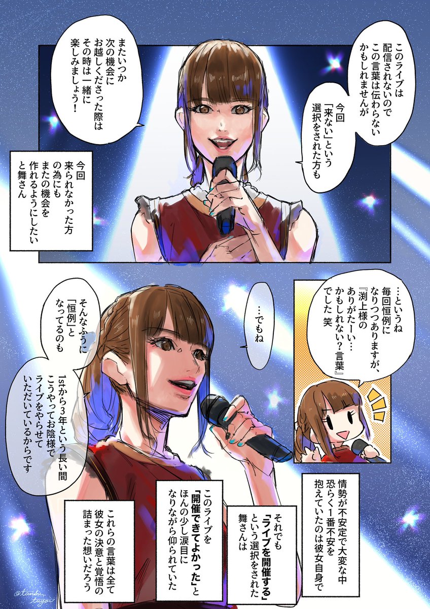 🎪渕上舞さん「THE CIRCUS」大阪公演🎪 アンコール後MCのレポ絵(兼、感想絵)です✍️ ※記憶を辿って描いたので、細かい言い回しの違いや記憶違いがあると思います。大体のニュアンスで…🙏 #渕上舞3周年LIVETOUR