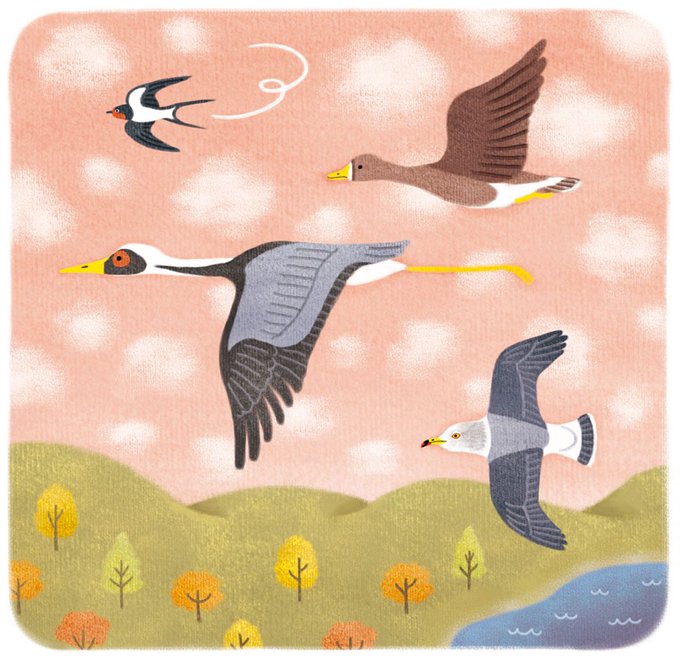 よき夜を 2022-05-14 渡り鳥 mikepunch.net/2022-05-14/ @mikepunch358より #mikepunch #猫のイラスト #エッセイ #世界渡り鳥デー #渡り鳥 #おにぎり猫のものがたり #WMBD #World_Migratory_Bird_Day