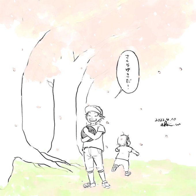 It was look like snow ❄️🌸! あんなに美しい桜吹雪初めてでした 。 #child #illustration #イラスト #育児絵日記 #子育て #4歳 #adobefresco #はっちゃんよっちゃん #2歳 #siblings #きょうだい #aki_watanabe #渡辺亜希