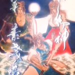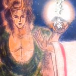 書道家 華光さんとのコラボ イザナギの左目からアマテラスが生まれ、右目から作るが生まれ、鼻からスサノオが生まれたので、その位置に三貴神を描きました。#芸術 #art #illustration #絵描きさんと繋がりたい #芸術の輪 #みんなで楽しむTwitter展覧会 #絵のある暮らし #アートのある暮らし #渡辺光