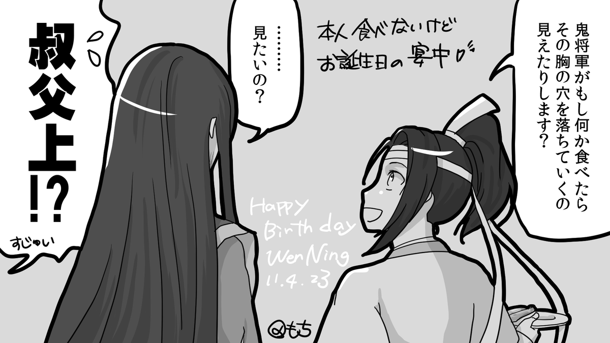 うっかりものなので西暦何年ってのを書き間違えて投稿しておりました! 修正したので上げ直します~! ごめんね温寧😂お祝いする気持ちは本物だから許して!! 改めてお誕生日おめでとう温寧🎉 #温宁0411生日快乐 #0411温寧生誕祭 #HappyWenNingDay #陳情令ファンアート twitter.com/momone_wen/sta…