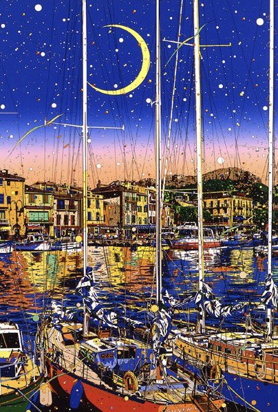 版画『ロマンシング ハーバー』 南欧のイルミネーション、羽ばたいていく浪漫。 gallery.eizin.co.jp/?p=873 #鈴木英人 #版画 #アート #イラストレーション #イラストレーター #フランス #マルセイユ #港 #ヨット #eizinsuzuki #illustration #illustrator #art #France #Marseille #harbor #yacht