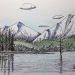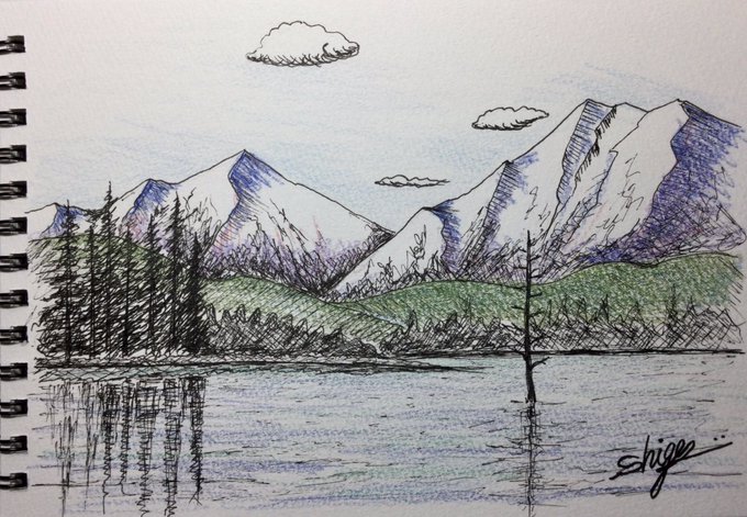 〜山の風景〜 今朝はミリペンと色鉛筆を使って、山と湖畔の風景を描いてみました。ミリペンで描いた後、主に陰の部分のみに色鉛筆で加筆しました。 #ミリペン画 #風景画 #色鉛筆 #山 #湖畔 #立ち枯れした木 #絵を描いている人と繋がりたい #絵が好きな人と繋がりたい