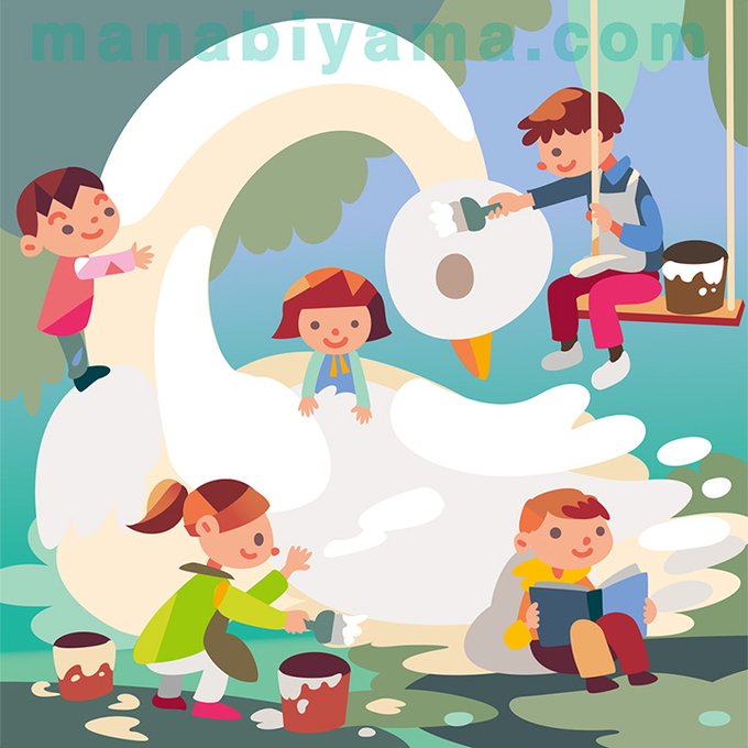 イラスト:スワンと子どもたち 子どもたちの居場所をつくる。 作品を #イラストレーターズ通信 webで更新しました。 illustrators.jp/profile.php?id… #白鳥 #ものづくり #絵を描く #絵本 #公園 #森 #湖畔 #イラストレーター #manabiyama #143fr