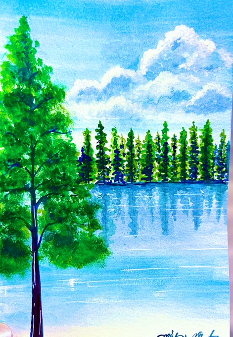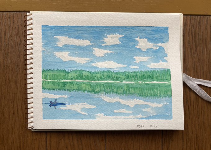 こういう自然のあるところに行きたい! #風景画 #色鉛筆画 #イラスト #イラストレーターさんと繋がりたい #イラストレーター #アナログイラスト #art #illustration #キャンプ #アウトドア #ゆるいイラスト #アナログイラスト #アナログ絵描きさんと繋がりたい #絵描きさんと繋がりたい #湖畔