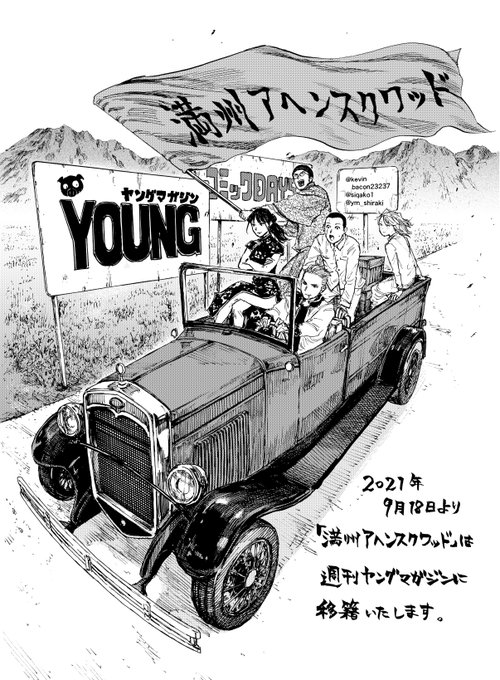 月曜日!ヤンマガ! #満州アヘンスクワッド 70万部突破、ありがとうございますー! 今週は巻頭カラーを頂いています! このカラー、丸3日かかってしまいました。 本編85話「検問」も是非誌面で!よろしくお願いします!