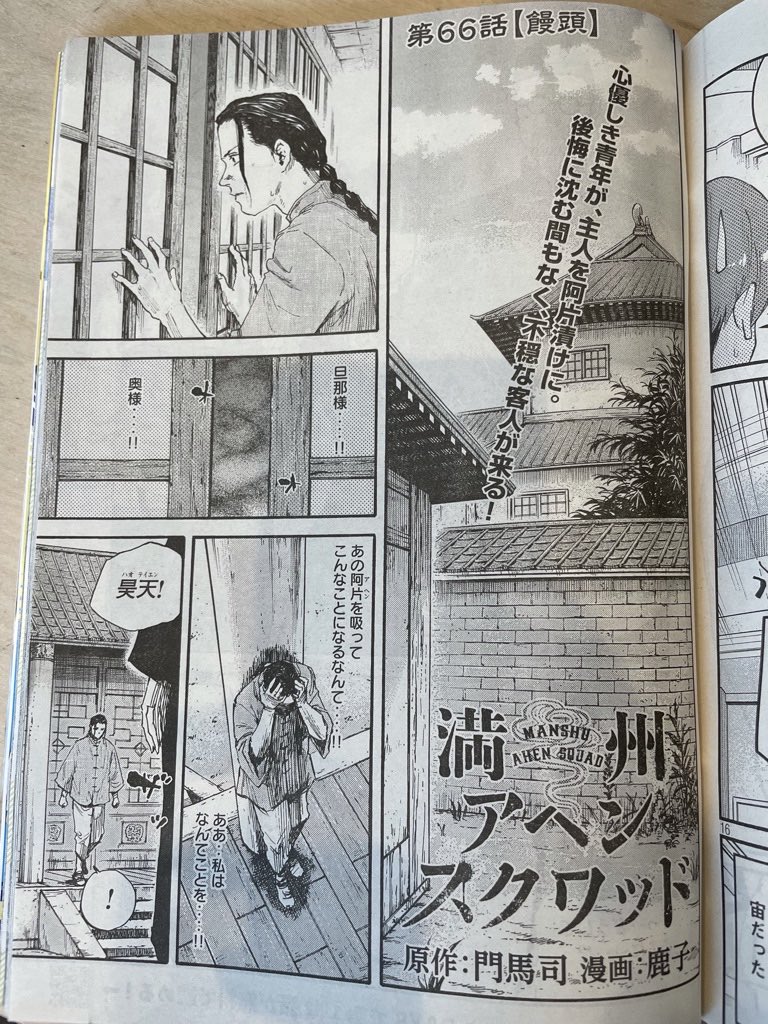 本日発売のヤンマガから #満州アヘンスクワッド 移籍連載スタートしてます! 初っ端巻頭カラー頂いてます! 門馬先生が移籍に相応しいバチコリ決まった1話を用意してくださっています!ぜひ誌面で確認してください。 よろしくお願いします!
