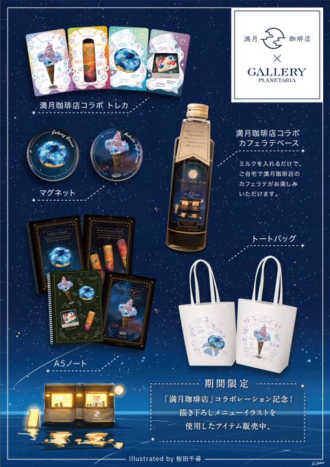 【お知らせ】お待たせしました!満月珈琲店とプラネタリアさんのコラボグッズ、明日(14日)お昼12時より販売開始です!幻想的で美味しい宇宙をお楽しみくださいー✨☺️ planetaria.theshop.jp #満月珈琲店プラネタリウムコラボ